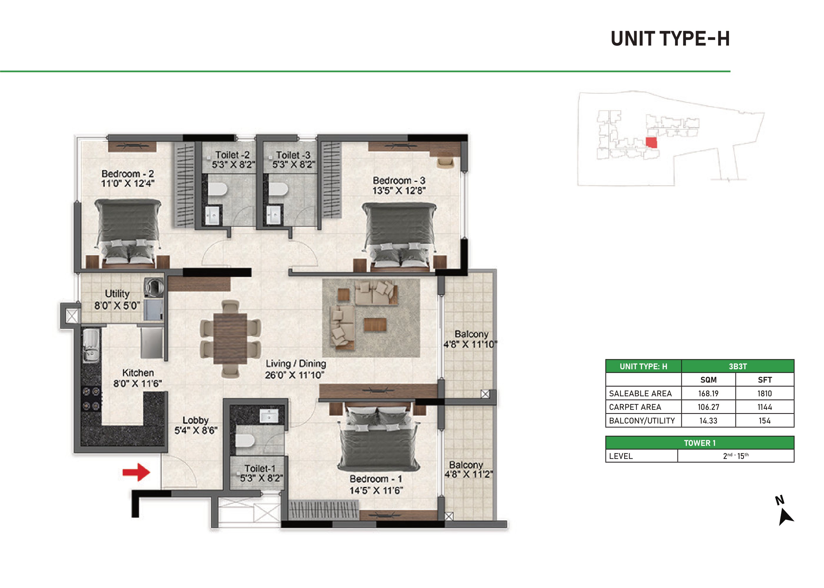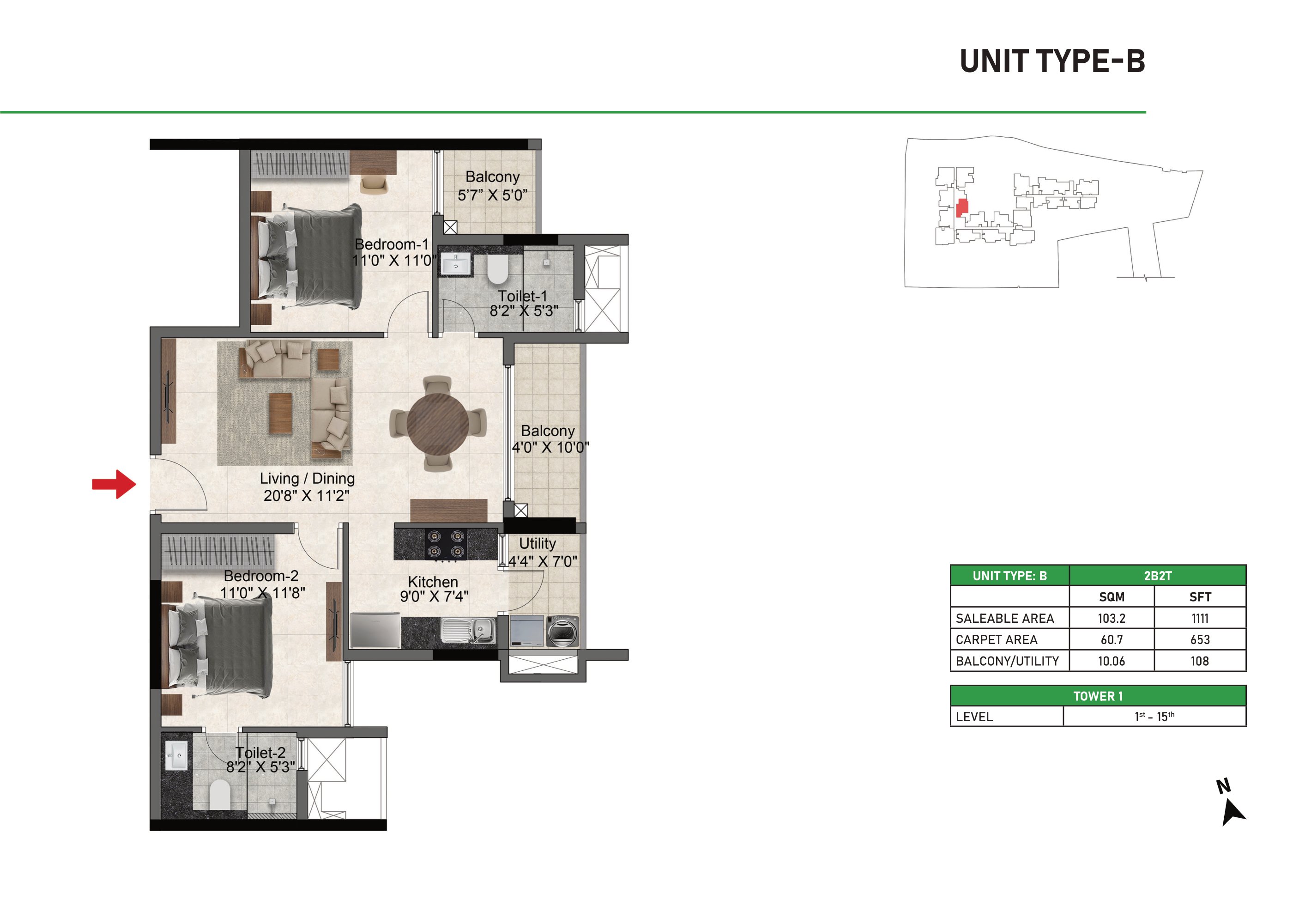 Prestige Glenbrook 2 bedroom set homes are meant for small families or low-income groups. Prestige Glenbrook 2 BHK floor plan will have 1 entrance plus foyer, 2 bedrooms, 1 or 2 bathrooms, 1 living with dining, 1 or 2 balconies, and 1 kitchen with utility. Prestige Glenbrook, 3 bedroom set dwellings, are designed for bigger families, those who need spacious living areas, or middle to high-income groups. Prestige Glenbrook 3 BHK floor plan can have 1 entrance plus foyer, 3 bedrooms, 2 or 3 bathrooms, 1 living with dining area, 2 or 3 balconies, 1 kitchen with utility, and with or without a provision for 1 servant room with attached bathroom. Prestige Glenbrook 3.5 BHK floor plan will have similar options as the 3 BHK abodes plus a study.