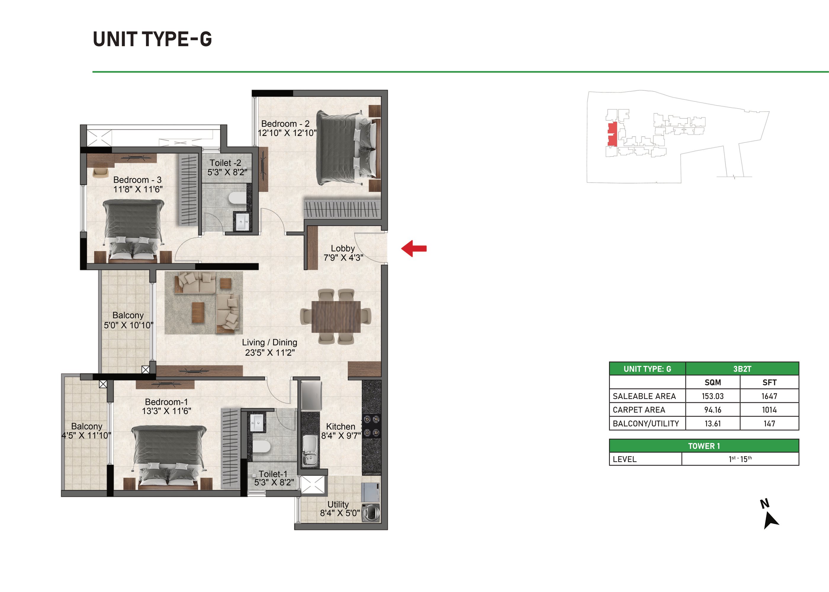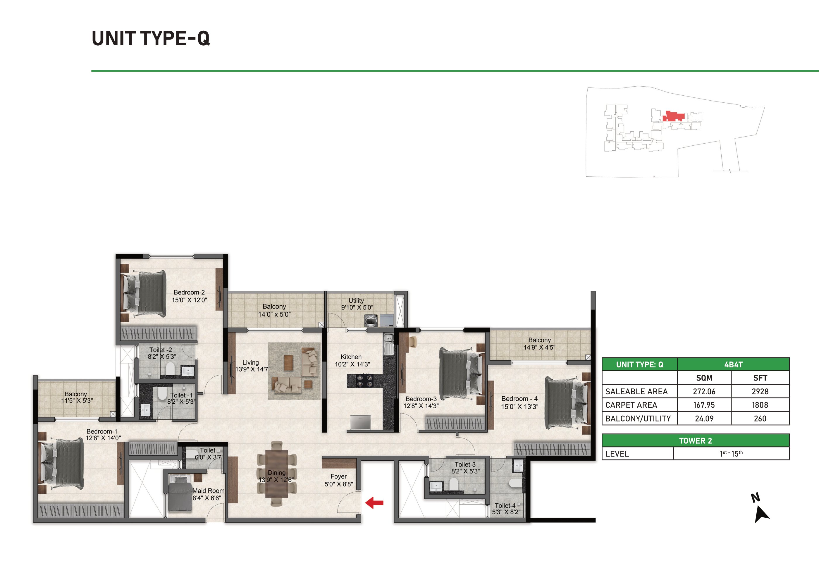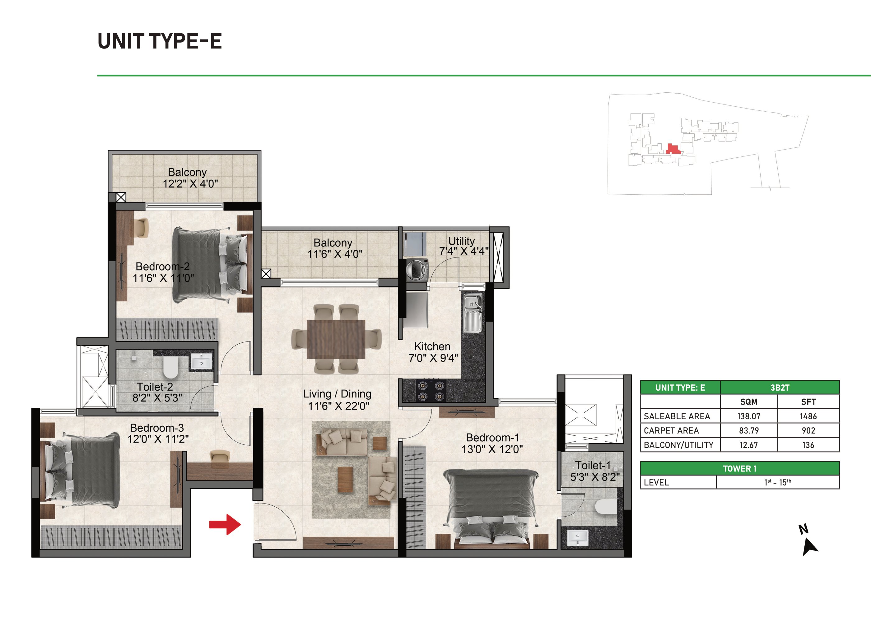 A floor plan of any real estate project is a measured diagram of its space that gives the sizes and layouts of any property and is a critical tool of real significance. The realtors need to design it as it forms the basis of any project, which is further required for official formalities and also the investors. Prestige Group very meticulously prepares the floor plans of all its projects. The builder also ensures that it carefully prepares floor plans of all the homes with the right dimensions and layouts so that it gets happy customers in the end. Prestige Glenbrook floor plan is set to have 2, 3 and 3.5 bedroom set apartments with aesthetically designed layouts and interiors. All the homes will have varied sizes and layouts for potential investors to choose from.