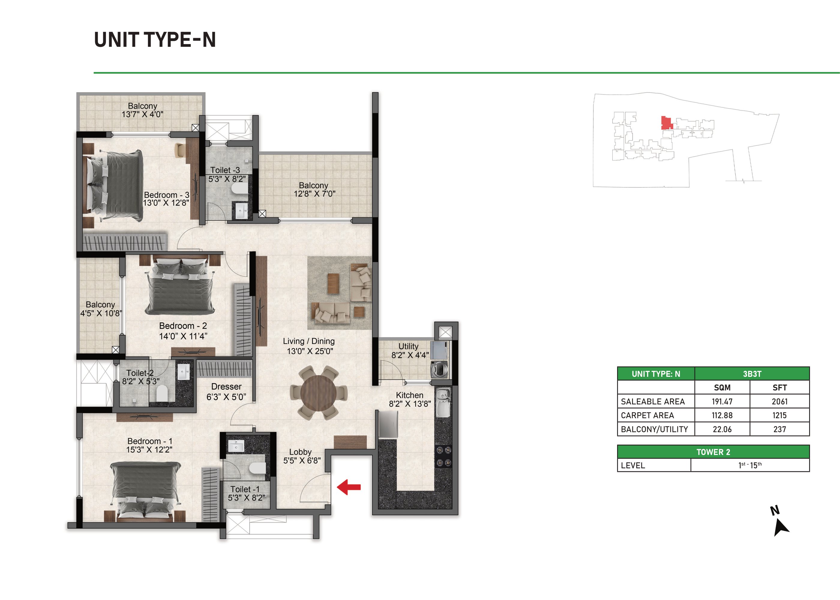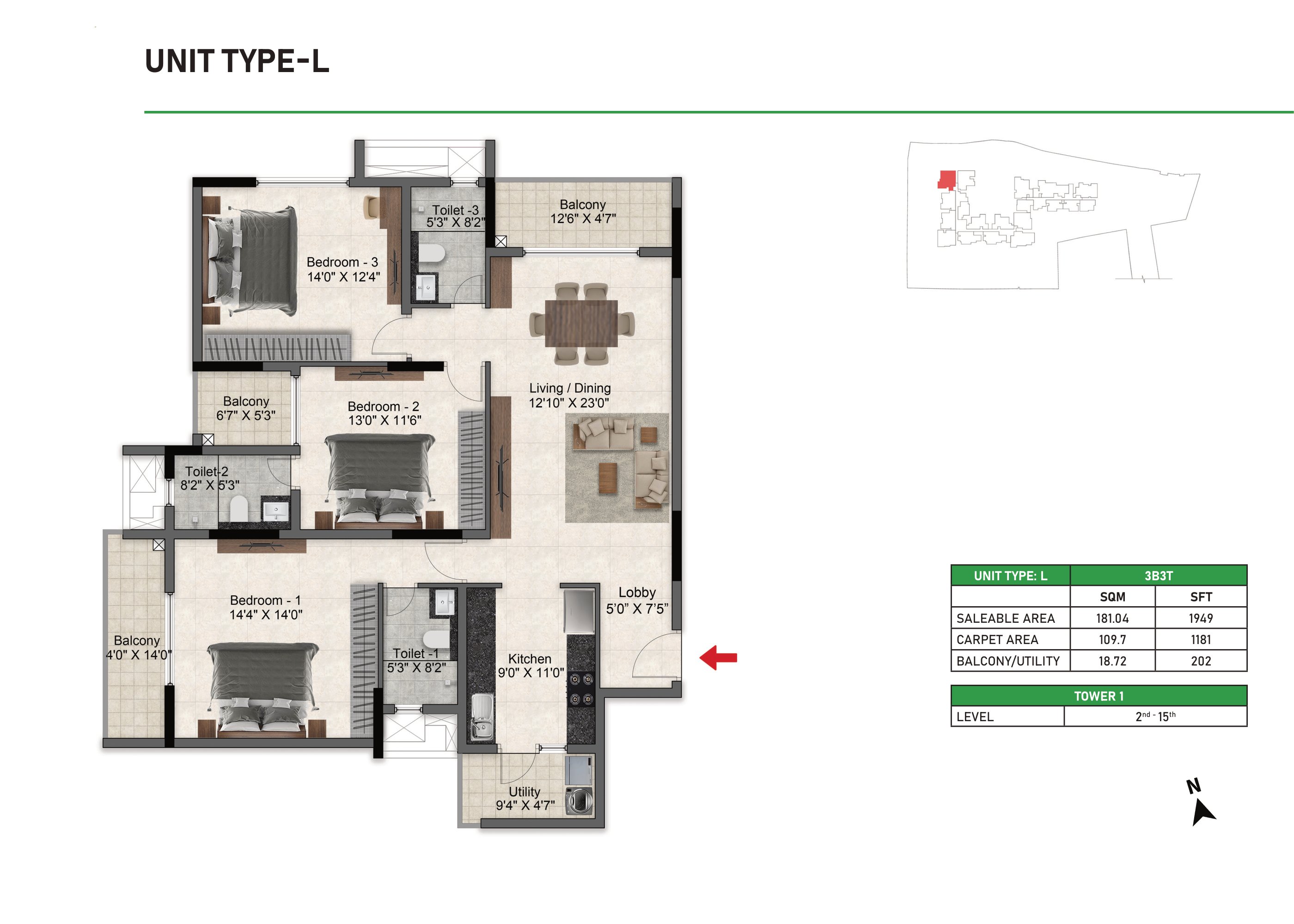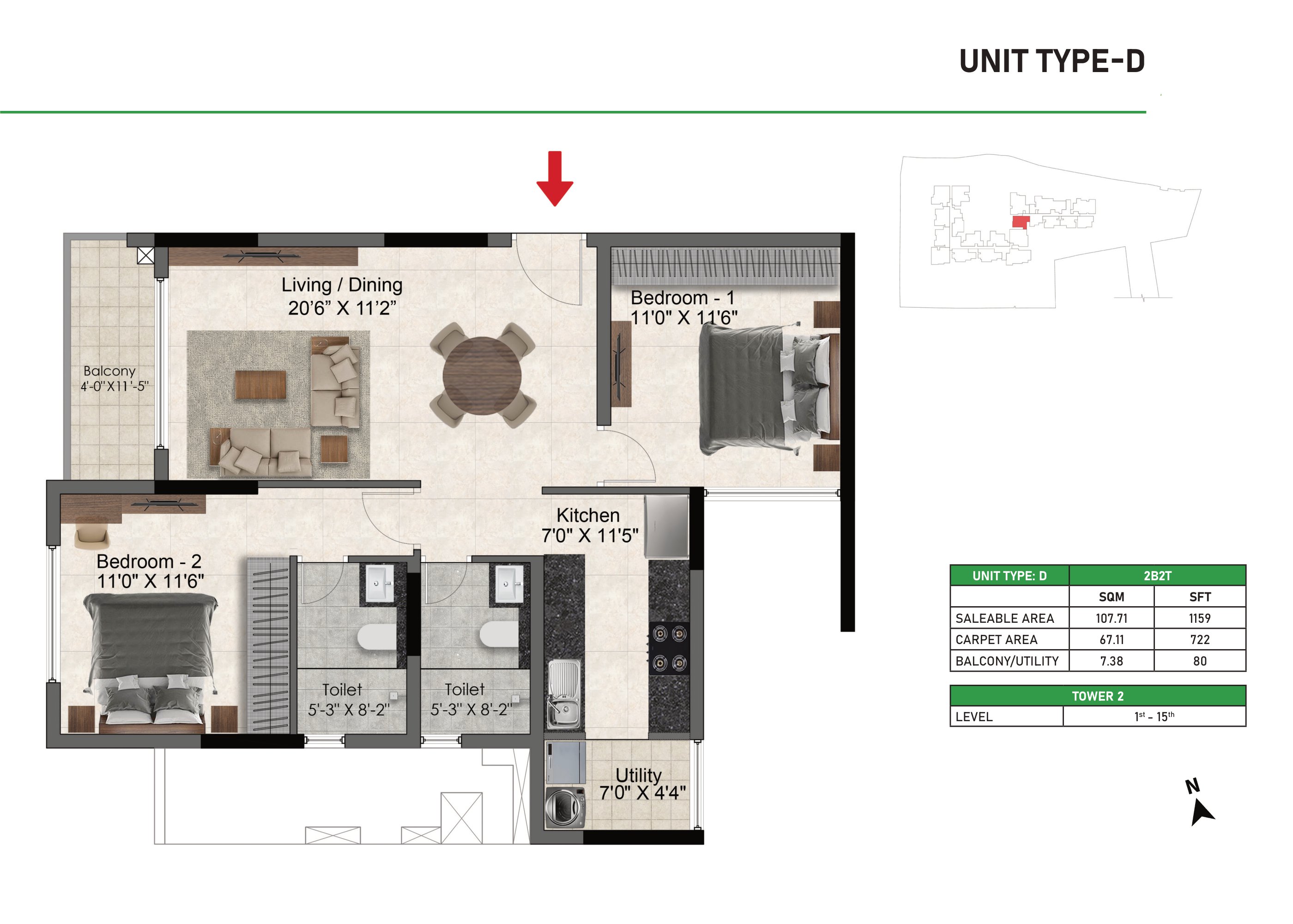 A floor plan of any real estate project is a measured diagram of its space that gives the sizes and layouts of any property and is a critical tool of real significance. The realtors need to design it as it forms the basis of any project, which is further required for official formalities and also the investors. Prestige Group very meticulously prepares the floor plans of all its projects. The builder also ensures that it carefully prepares floor plans of all the homes with the right dimensions and layouts so that it gets happy customers in the end. Prestige Glenbrook floor plan is set to have 2, 3 and 3.5 bedroom set apartments with aesthetically designed layouts and interiors. All the homes will have varied sizes and layouts for potential investors to choose from.
