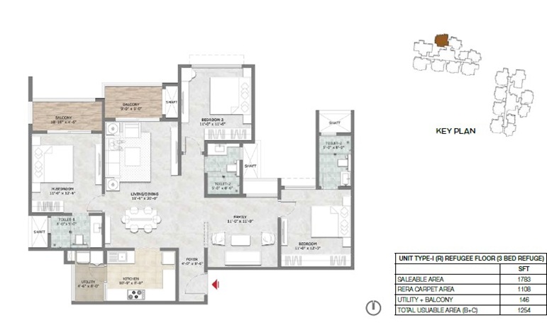The 3.5 BHK apartment floor plan is designed to offer an opulent way of living. It includes