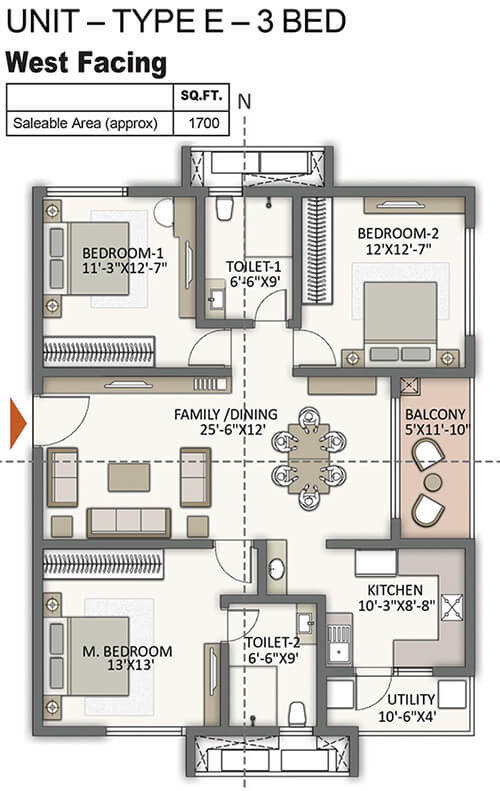 The project offers commodious 3 BHK apartments with floor area ranging from 1631 sq. ft to 2433 sq. ft.